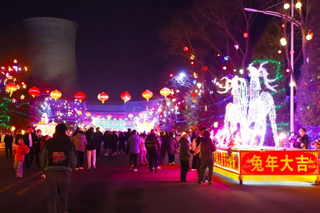公司十八米大路被彩燈裝扮得美輪美奐,經由榆化各分廠精心制作的彩燈在此閃亮登場。每座彩燈美得各有千秋,讓人目不暇接,孔雀、鳳凰栩栩如生,惟妙惟肖的兔子靈氣十足……漂亮的彩燈不僅造型獨特,而且主題鮮明、寓意深刻,榆化元素更是貫穿其中。這些元素有不待揚鞭自奮蹄的老黃牛精神,全員健身共赴健康生活的決心,“長風破浪會有時,直掛云帆濟滄海”的氣魄、實現“創新、科技、美麗、陽光、開放、共贏”六型新榆化的美好愿景;有安全環保與生產發展的雙向奔赴;有“五十年鑄就榆化航母、新世紀再創企業輝煌”的雄心壯志。游客們面對彩燈贊不絕口,積極拍照留念,流連忘返于每座彩燈前。榆化為歡慶佳節的箕榆人民獻上一場流光溢彩的燈火視覺盛宴。